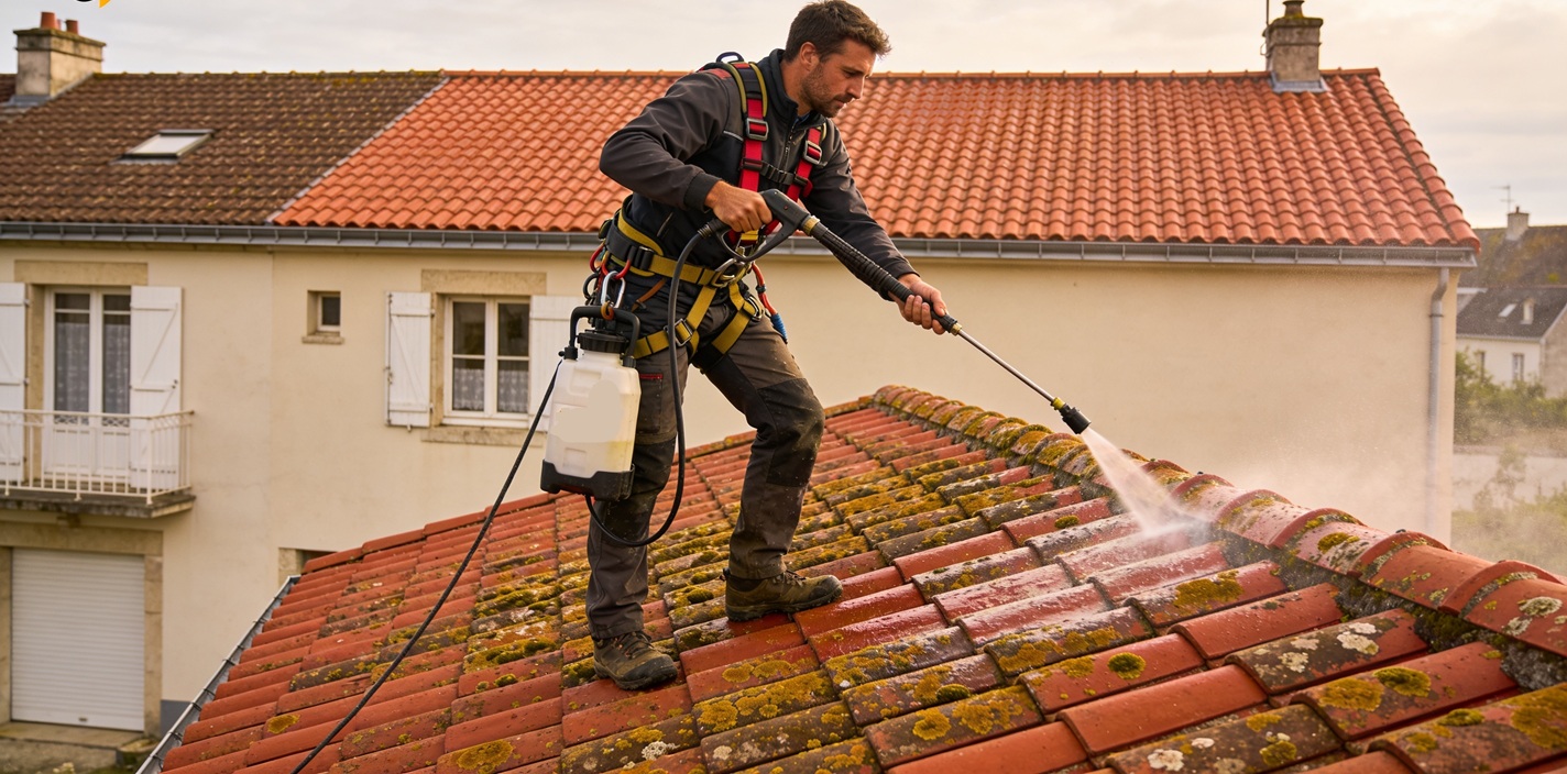 Démousser une toiture ne consiste pas à passer un nettoyeur haute pression sur les tuiles. Mal utilisé, il peut abîmer le matériau, décoller les ardoises et fragiliser l’étanchéité. L’intervention d’un couvreur permet :